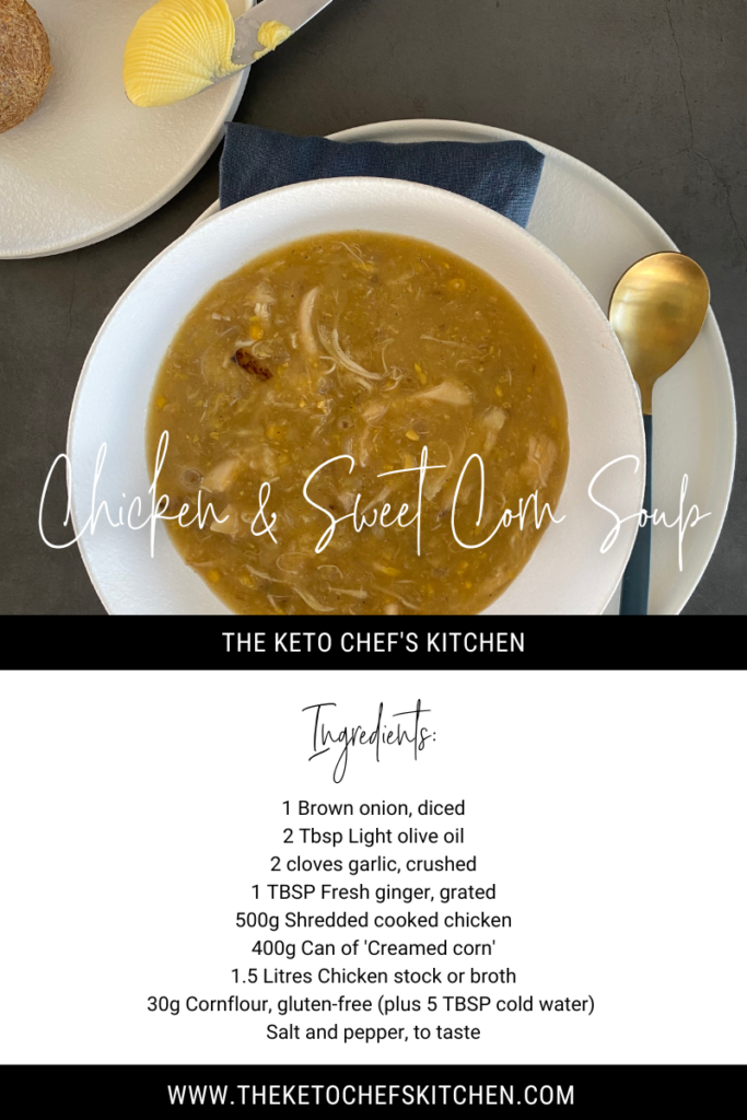 NOTE: Look for unsweetened creamed corn. If you want to make this soup even lower carb, you can omit the corn flour and thicken it with 1-2 teaspoons of xanthan gum.