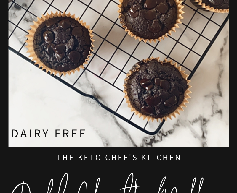 The BEST keto / low-carb Double Chocolate Muffins also happen to be dairy-free! They are so quick to throw together, just add everything together in a bowl and whisk. (I LOVE an all in one method!)