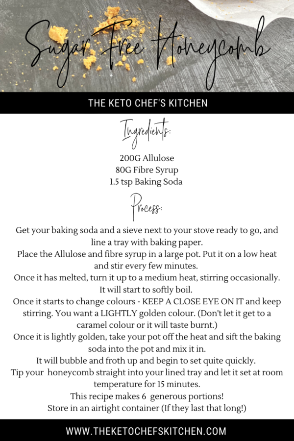 ** NOTE: Use plain fibre syrup. Using others like caramel fibre syrup will make it a lot harder to know when the hokey pokey / honeycomb is ready and you risk over or under cooking it.