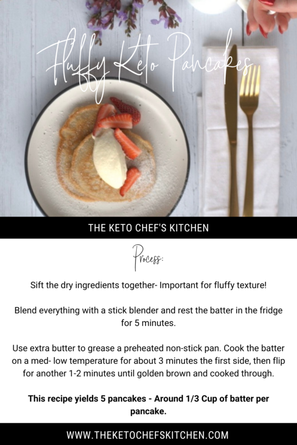 Breakfast, Vegetarian Fluffy Keto Pancakes adminJuly 8, 2019March 8, 2023 These keto, gluten-free, low-carb pancakes are super easy and mega fluffy! Nutritional Info is calculated per pancake at 5 pancakes per recipe. DAIRY FREE OPTION: Use coconut oil instead of butter. SUGAR-FREE 'MAPLE' SYRUP RECIPE The Keto Chef, Nerys X