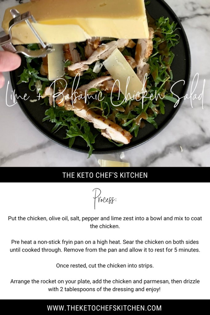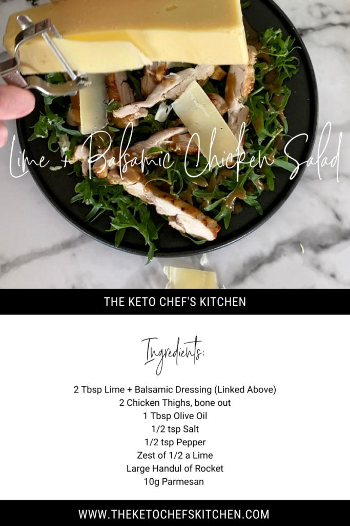 This Keto Lime + Balsamic Chicken Salad is a great way to level up your salad game! It’s light & refreshing with a little bit of tang, plus the nuttiness from the parmesan makes it an all round winner!