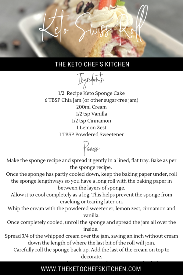 Keto, sugar-free, gluten-free, low carb Swiss Roll recipe! This sponge is light and fluffy with the perfect balance of tang and sweet!