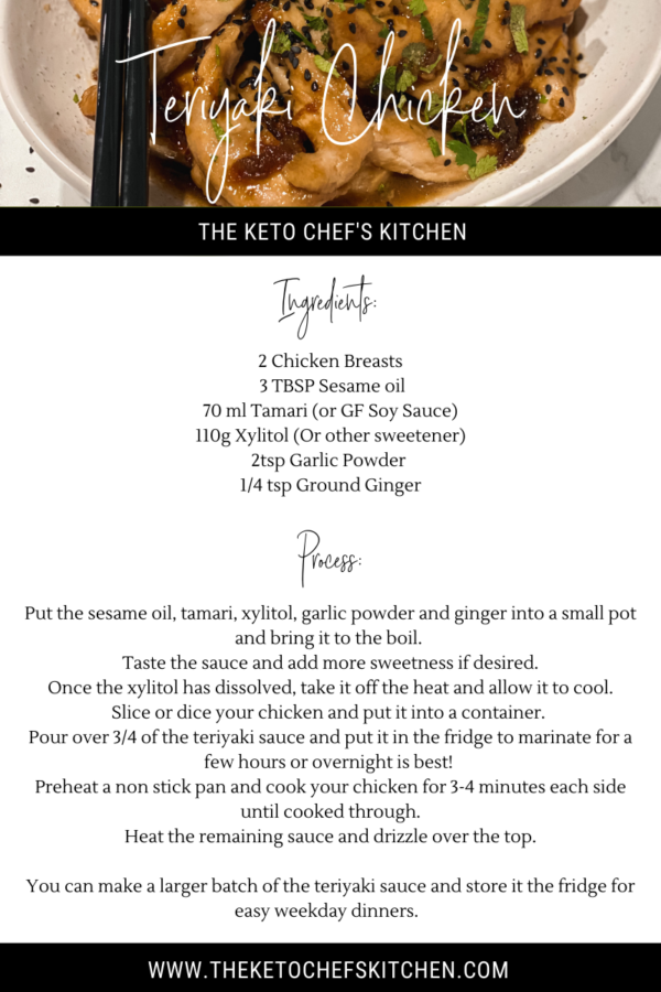 This low-carb, keto friendly Teriyaki Chicken is sure to keep the whole family happy! It’s super quick and easy to throw together with your favourite veg!
