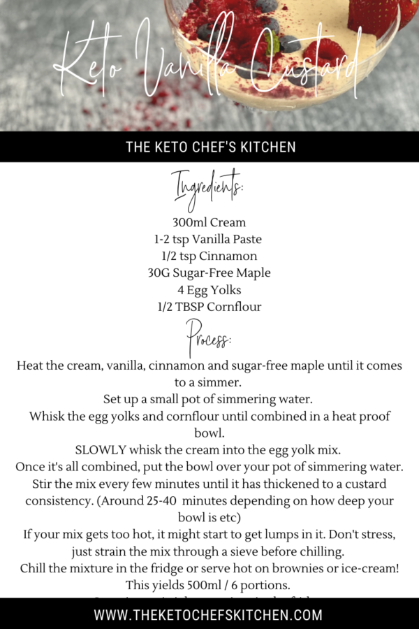 This keto, suagr-free Vanilla Custard recipe will be your new best friend! It’s light and creamy, with 1 net carb per serve!